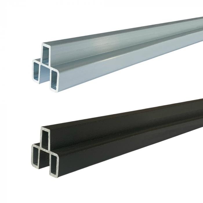 Die Zaunfeldsets sind wahlweise mit Zwischenleisten aus silbernem oder anthrazitfarbenem Aluminium erhältlich. Die Pfosten gibt es ebenfalls in beiden Ausführungen.