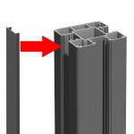 Die Pfosten sind als Hohlprofil aus Aluminium ausgebildet. Die Montage der entsprechenden Pfostenkappe ist zum Verschluss der Oberseite des Pfostens in jedem Fall ratsam.Drei Längsseiten der Pfosten sind zur Aufnahme der Einzelprofile genutet. So können sie als End- Mittel- oder Eckpfosten eingesetzt werden. Aus optischen Gründen sollten die nicht benötigten Nuten durch die entsprechenden Pfostenabdeckleisten verschlossen werden. Diese sind im Lieferumfang des Pfostens nicht enthalten.