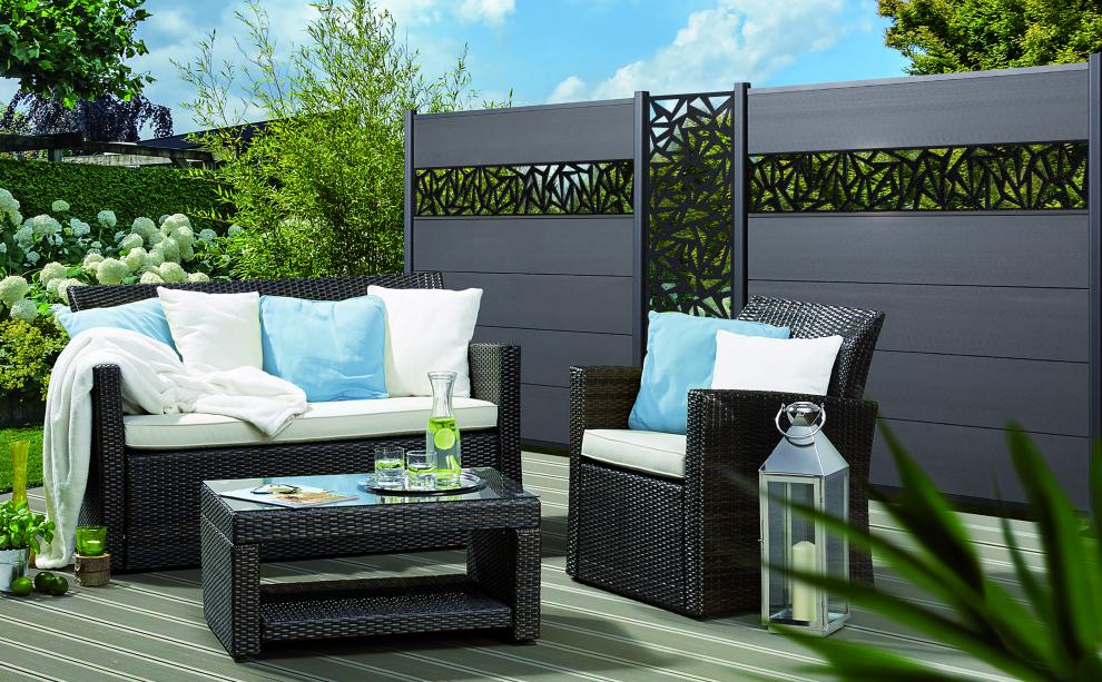 Die Profile aus der Zaunserie System WPC ermöglichen den Bau von Zäunen in abgestuften Höhen. Der Einsatz der erhältlichen Glaselemente eröffnet weitere Möglichkeiten der individuellen Gestaltung des Zaunes.